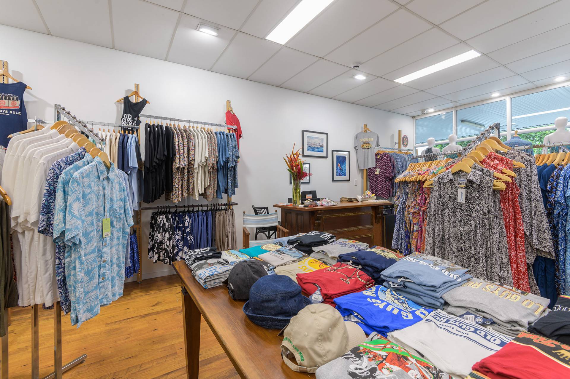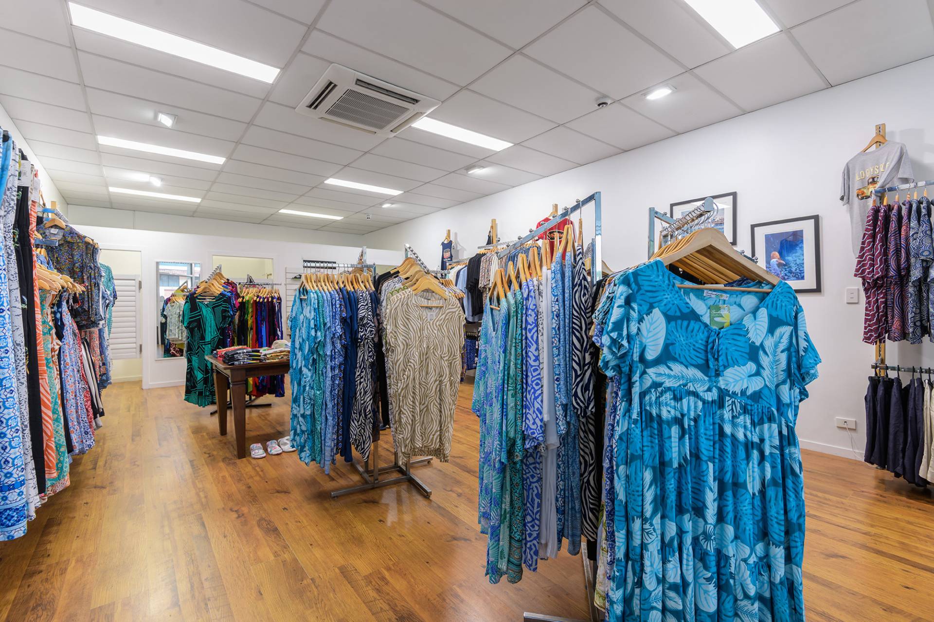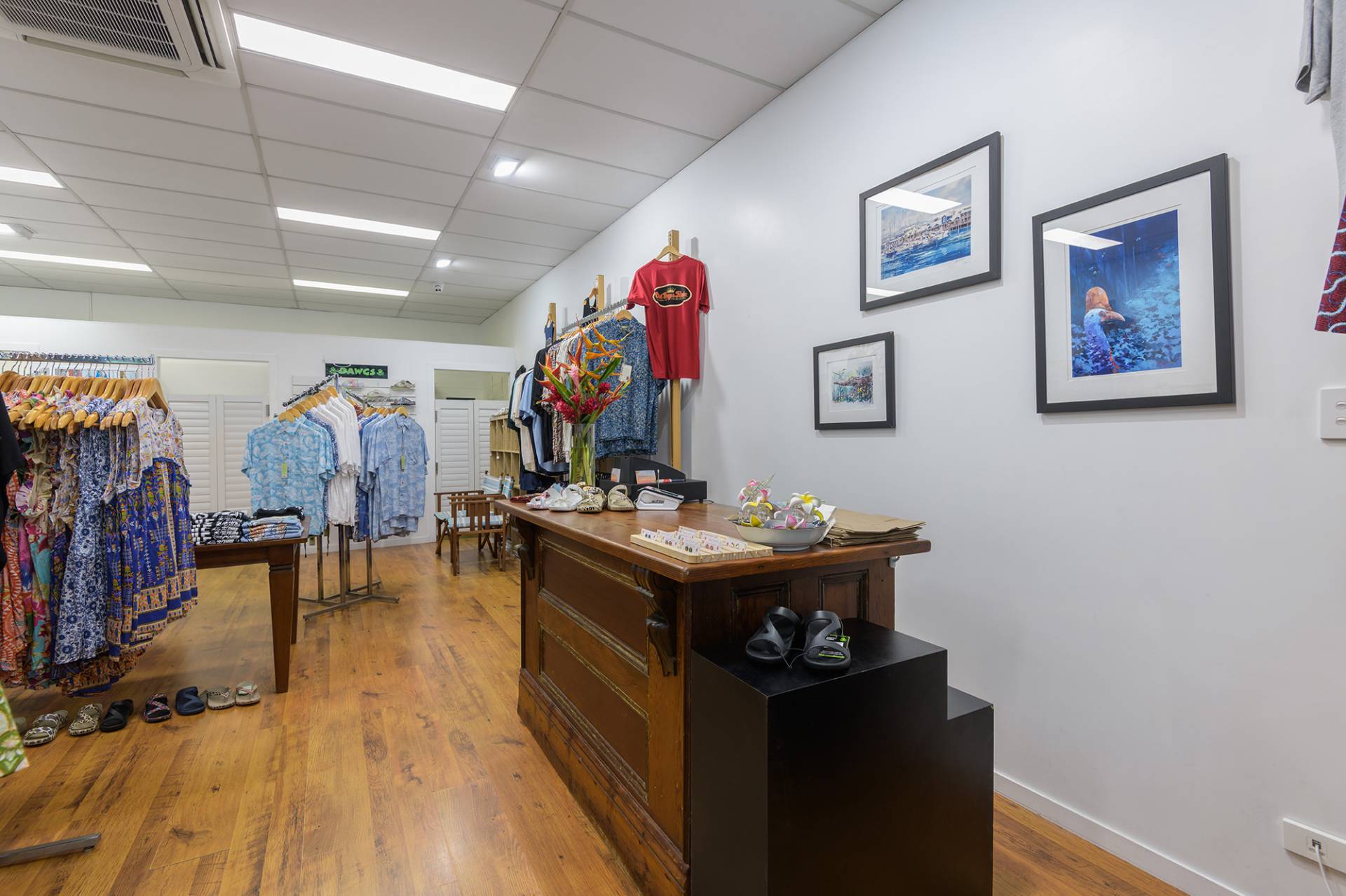 • Retail fitout with counter, two changing rooms and a storage room with a sink at the rear
