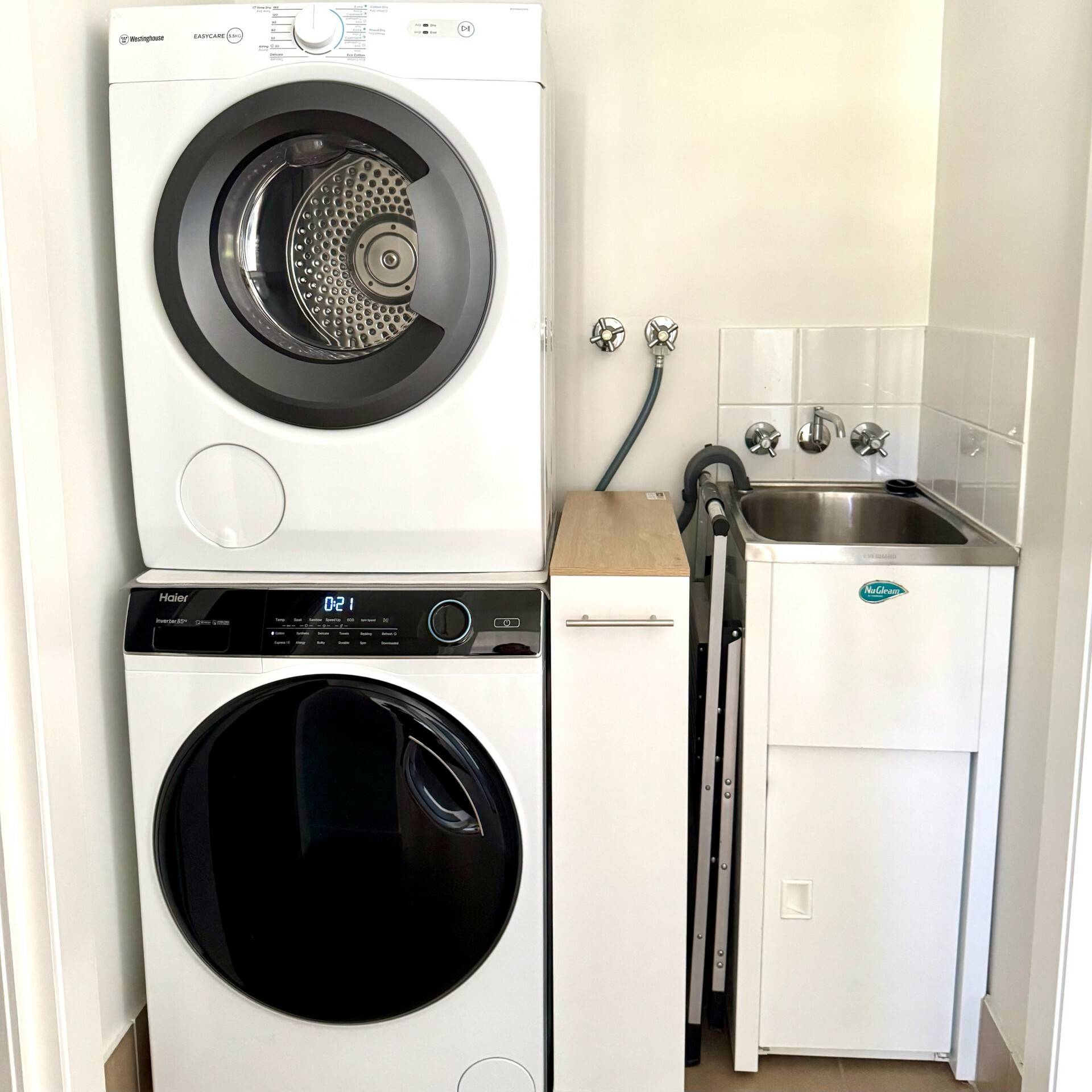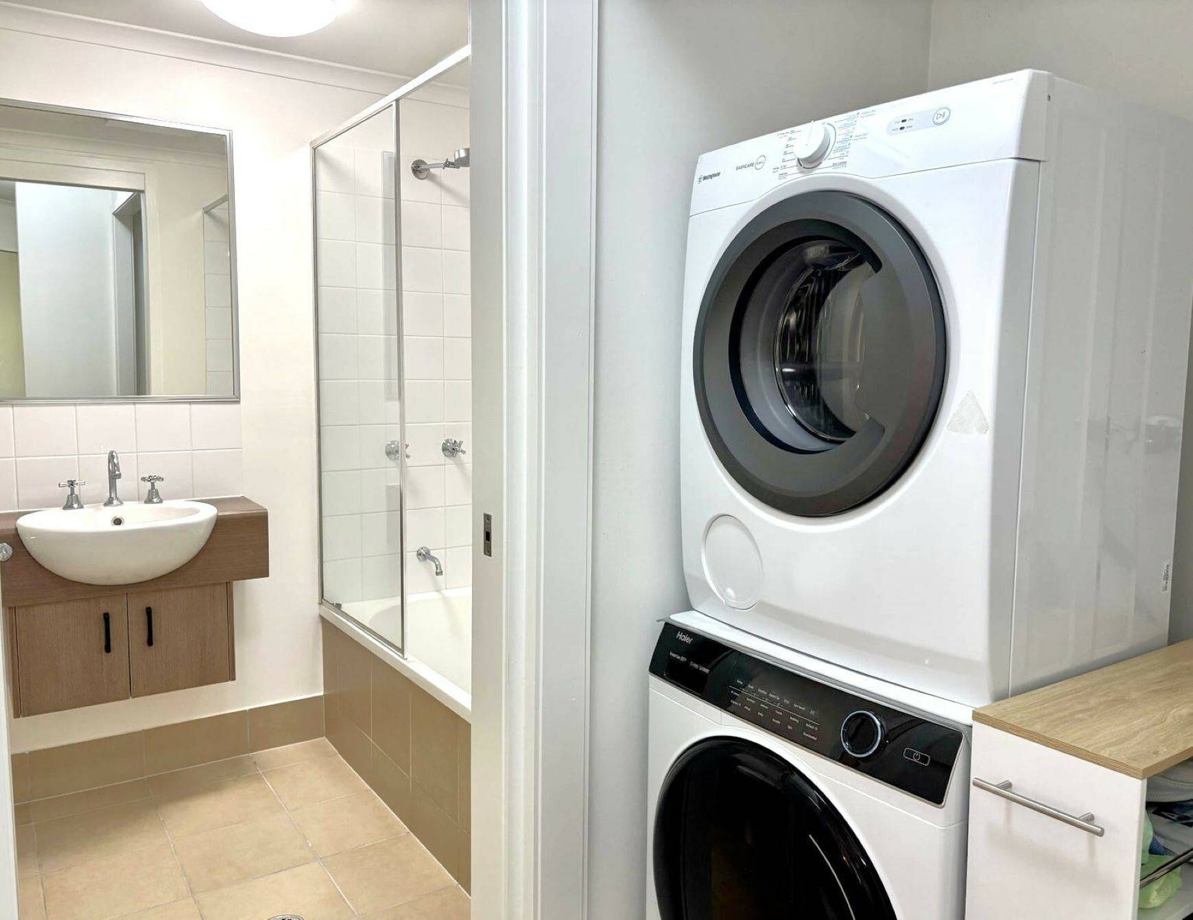 The generous primary bedroom and second bedroom both feature built-in wardrobes, providing ample storage for all your belongings. Two well-appointed bathrooms ensure morning routines remain stress-free, while the separate laundry adds practical convenience often missing from apartment living.
